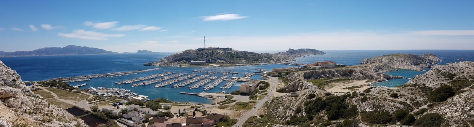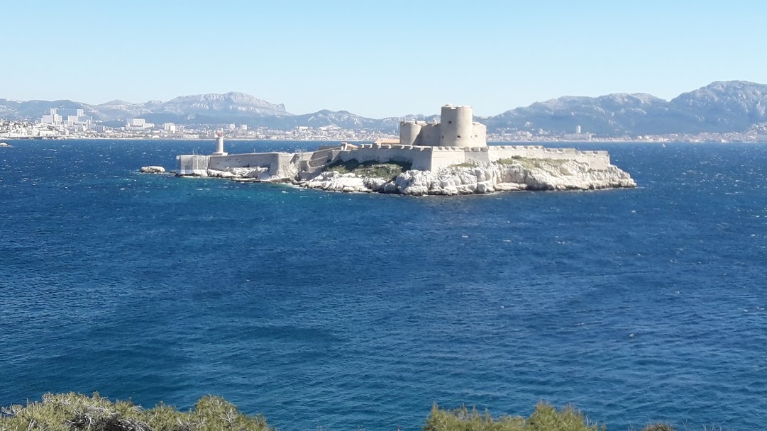 Le lieu : les îles du Frioul. Depuis des années je les ai vues au loin depuis Marseille. Elles sont situées face au vieux port à 15 minutes de navette rapide environ. Une île se détache avec son fort : If. Le château est le château d’If, célèbre dans le monde entier pour avoir accueilli le comte de Montecristo (dans le roman d’Alexandre Dumas). Nous en avons fait le tour de nombreuses fois.