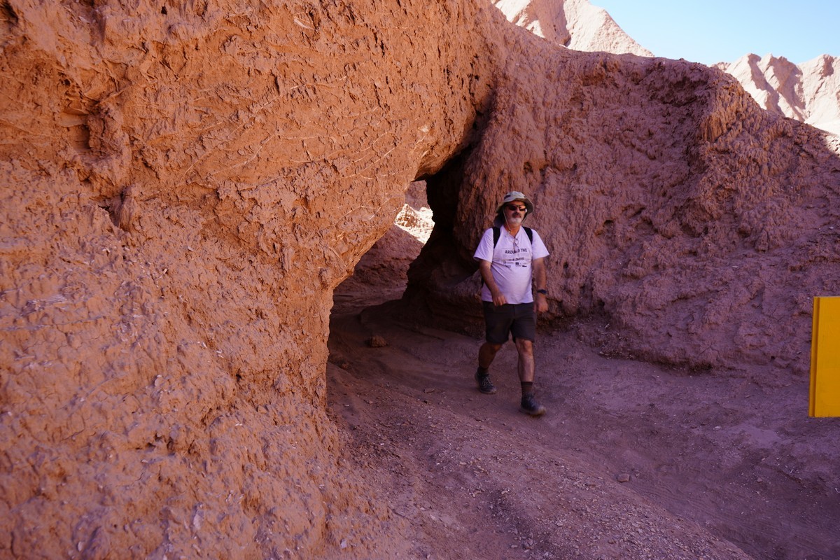Nous prenons une navette et l’avion jusqu’à la ville de Calama. Puis une autre navette depuis l’aéroport à travers le désert d’Atacama jusqu’à la petite ville de San Pedro de Atacama. Celle-ci est dans le désert qui est l’un des points les plus arides du monde. Nous découvrirons à notre retour qu’il s’agit de l’endroit le plus ensoleillé du monde, avec un soleil qui irradie autant que sur la planète Venus en plein été (The Guardian, 24/8/2023). Nous parcourons la ville et essayons de nous habituer aux 2500m d’altitude. Un thé de coca aide un peu. La ville est remplie d’agences proposant toutes les mêmes tours. Aucun prix n’est affiché. Nous réservons notre tour pour aller au Salar de Uyuni pour 210 dollars. Il faut payer en liquide donc l’enjeu devient de comprendre le fonctionnement des distributeurs pour changer les pesos en dollars. La soirée arrive et nous découvrons avec tristesse qu’il y a une pleine lune… Le désert de l’Atacama est réputé pour être un des meilleurs endroits au monde pour observer les étoiles… à condition d’être très bien couvert et qu’il n’y ait pas la pleine lune.