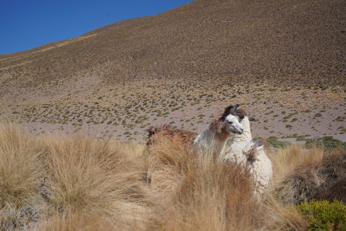 On passe la frontière avec la Bolivie et nous sommes récupérés par notre guide-chauffeur Pedrito dans un gros 4*4. Nous sommes 6 : Jyri et Tim, deux frères et leurs amis Vic et Anna. Tous les 4 sont Belges Flamands et se promènent entre l’Argentine, le Chili et la Bolivie. A peine 100 ans à eux quatre… Leur compagnie est sympathique et ils nous acceptent même si nous ne les suivrons pas dans leurs escalades. Jyri vient d’obtenir son diplôme de médecin et cela nous rassurera un peu quand les symptômes du mal des hauteurs se feront plus présents. Il donnera à Isabelle un diurétique pour soigner son mal des montagnes. C’est un vrai enjeu. Isabelle et moi n’aurons pas les mêmes symptômes en même temps mais le souffle très court, le manque d’oxygène se font sentir. En marchant, bien entendu, mais même la nuit, il peut être difficile d’avoir une respiration normale. La montre connectée d’Isabelle permet de lire les taux d’oxygène dans le sang. On est très loin des chiffres qu’il convenait d’avoir pendant le covid. Avec ces chiffres là nous serions aux urgences.