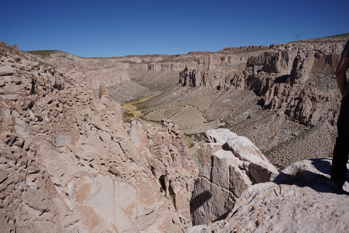 Au menu du jour, des paysages extraordinaires. Des canyons, des rochers aux formes étonnantes, des roches volcaniques projetées il y a des millions d’années. Mais aussi les lagunes colorées par les minéraux dont nous avons tant besoin et que nous payons si peu cher. La discussion sur ces questions renvoie un nom : « Evo ». Evo Morales a été président de la Bolivie entre 2005 et 2015. Nous verrons des panneaux lui demandant de revenir « 2025-2030 ». Il a promulgué des lois obligeant aux entreprises d’assurer la transformation des matières premières en Bolivie. Pour éviter que la Bolivie soit juste un réservoir de matières premières. A en croire Pedrito cela a créé beaucoup d’emploi. Evo a également changé le positionnement de la Bolivie : les Etats Unis et l’Europe reculant au profit de la Chine, la Russie, l’Iran. Mais la vie reste ici très dure. Nous verrons plus tard des villages de mineurs accrochés à la montagne. Certains à 5000 m d’altitude.