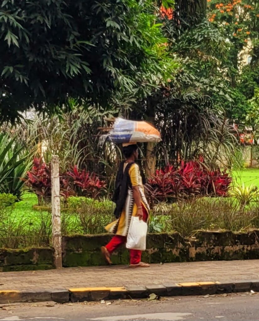 Les trottoirs, c’est plutôt rare, mais voir des gens porter des choses sur la tête, ça l’est beaucoup moins.